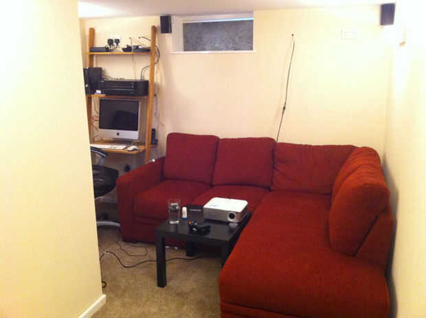 Para terminar tengo un sofá de la esquina. Realmente esto maximiza el uso del espacio y permite a tantas personas como sea posible. Bolsos de haba gigante ir delante del sofá que permite quienes quieren conseguir realmente cerca del proyector para el juego hacerlo.