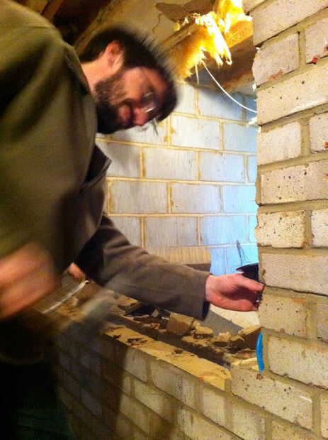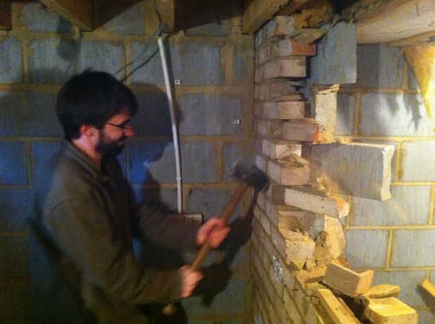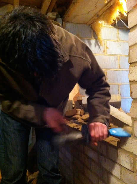 Abajo se encuentra los videos de nosotros romper la pared - la primera imagen muestra los bloques de la brisa que no son estructurales emprendidas hacia abajo. Pido disculpas por la menos Varonil moderación exhibida en sacar los primeros ladrillos de pocos...