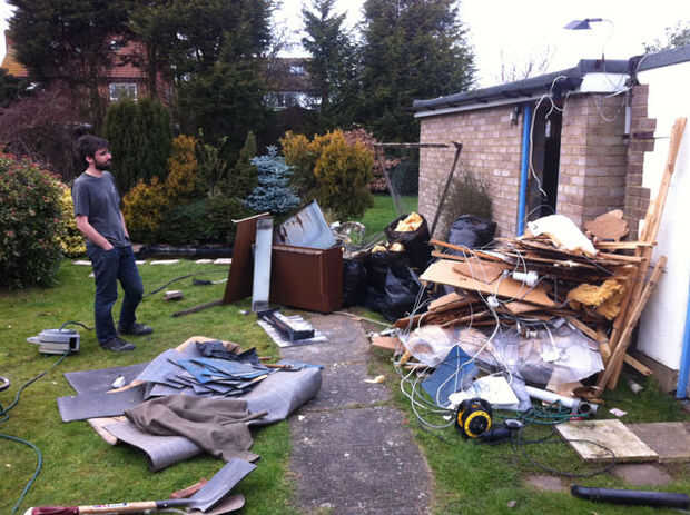Nos quedamos con un montón de lío.  Este es uno de los muchos diferentes rumas se deshacían de durante varias semanas.