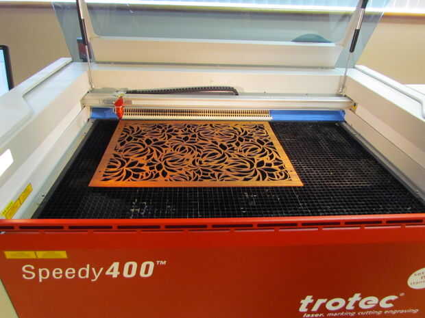 Como ya he mencionado antes, he usado una máquina de 80 vatios de Trotec Speedy 400 . Es rápido y grande, que es lo que necesitaba para este trabajo. Cada panel grande me tomó unos minutos para cortar.