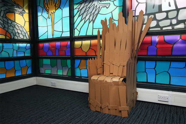 Hemos cortado y hecho 72 espadas de cartón para construir un trono de hierro de cartón increíble, y cualquier restos fueron utilizados para rellenar la Armería.