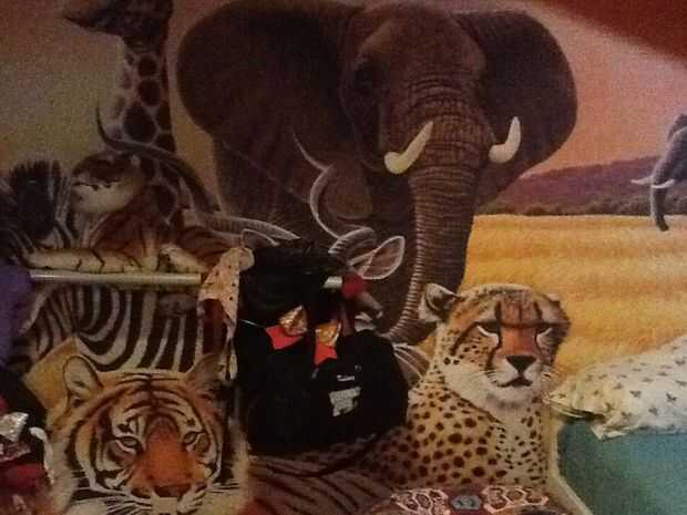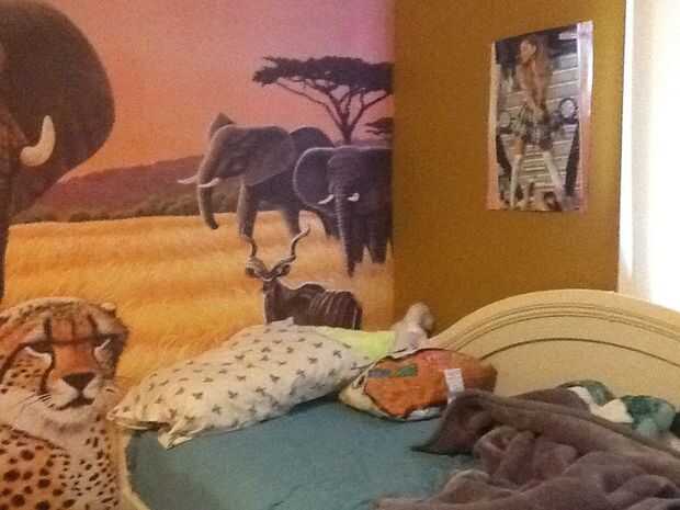 Para el papel pintado allí nuestros padres me alojé durante al menos cinco horas haciendo esto! Ahora no son artísticamente talentosos para que el fondo de pantalla es realmente sólo una frotación en la hoja de plantilla realizada por plazas! Utiliza un palito y frotaban el esto! Puede encontrar este material en sus locales Michaels!