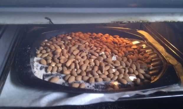 El primer paso es secar las almendras por ponerlos en el horno a calor de Convenio 200°C(150F).