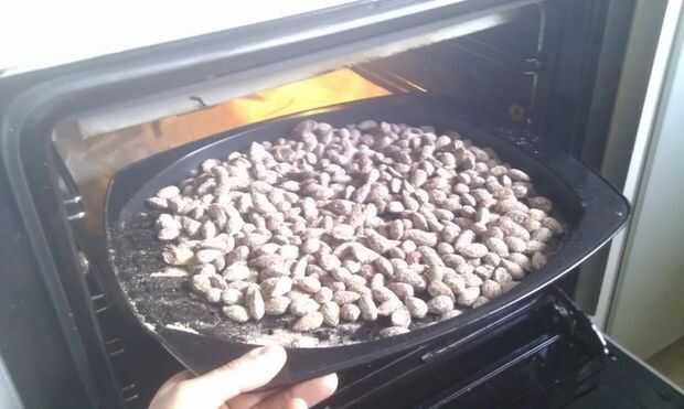 Las almendras son niveladas y poner en el horno a 200°C(392F).