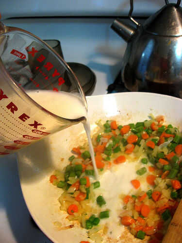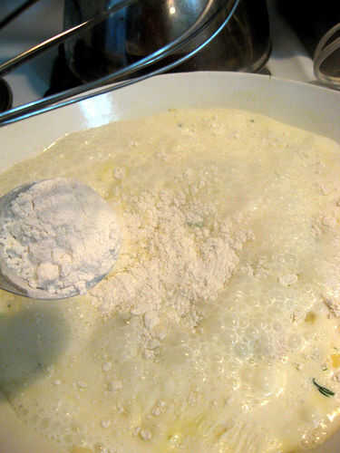 Si no tienes suficiente salsa para la cantidad de verduras y pescado a más vino y crema y añadir más harina para espesar la salsa.