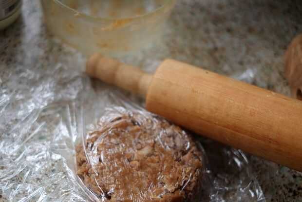 / Prensa de rodillo hacia fuera con palote hasta obtener un disco que se ajuste más o menos la parte superior de la tartera.