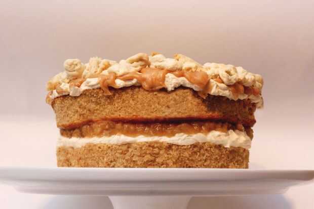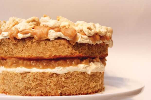 Tarta de manzana caramelo de Bourbon con corteza grasa tocino prestados