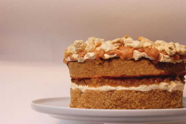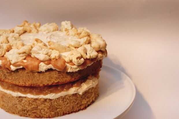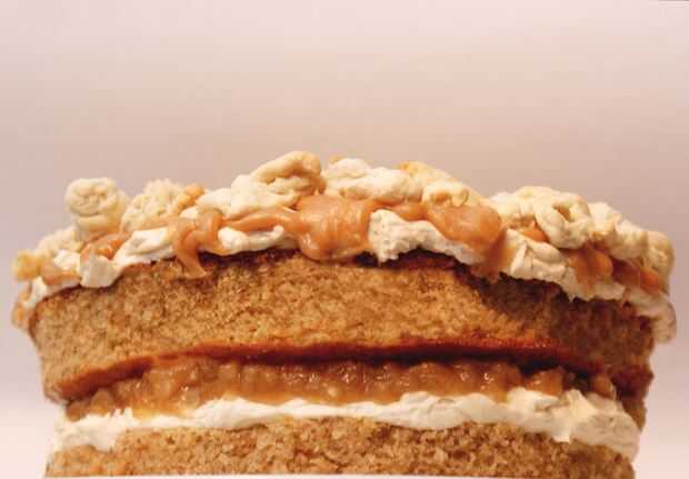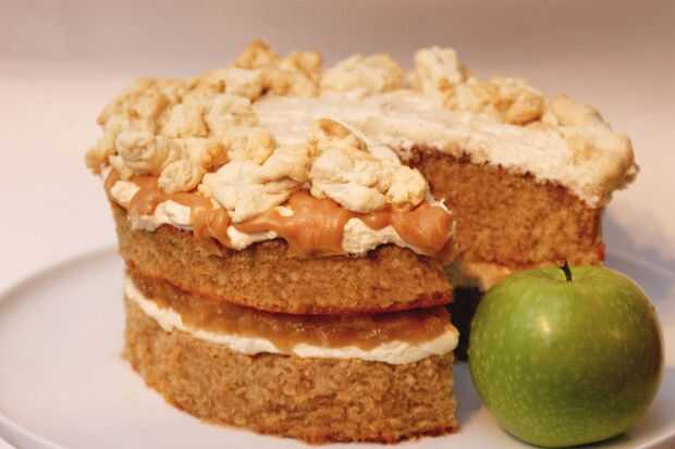 Tarta de manzana caramelo de Bourbon con corteza grasa tocino prestados