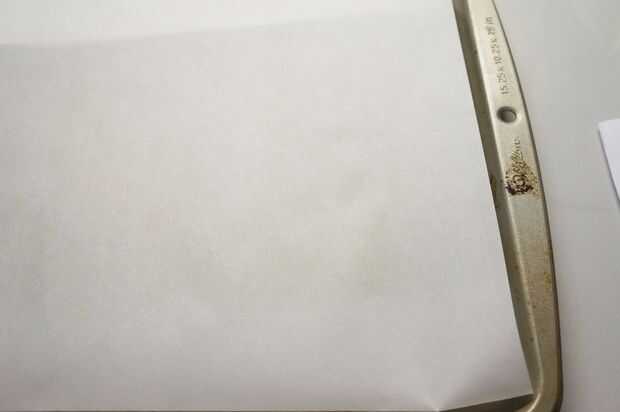 Usé una bandeja para hornear forrada con papel sulfurizado y funcionó muy bien. molde forrado con papel de aluminio (el bateador pegó terriblemente) y un bollitos forrados con una lámina y un forro de papel, (pegado terriblemente). Encontrar algo para evitar el pegarse, fue un problema. A mi me funciono mejor el papel de pergamino. (No utilizo mantequilla porque el aceite no es bueno para las claras de huevo a batir y no quería que los picos a colapsar si la mezcla entra en contacto con una fuente de horno engrasada.