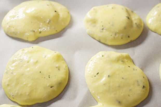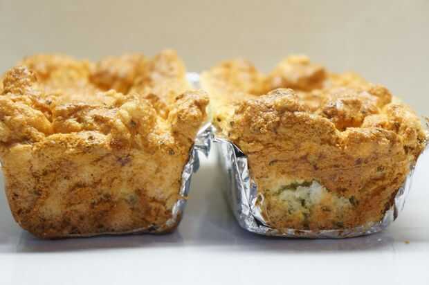 Está bien para llenar el nivel de bollitos a la llanta si usarlas. También puede utilizar el método de gota galleta con una cuchara de dulce y salado. Si usted desea hacer un pan o bollo como lo hice; probablemente se trabajará el papel de pergamino; Aunque no la probé para el molde o la bandeja de muffins. Sugiero si desea hacer esto, trate de una primera y ver qué pasa. Entonces podría intentar usar mantequilla o aceite y ver si la mezcla se desinfla.