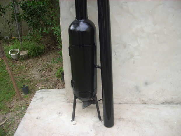 Una vez enfriado resbaló un cepillo giratorio de alambre y pintado con pintura negra para alta temperatura. La chimenea fue tratada como eso, pero en vez de cepillo utiliza líquido Fosfatizante y papel de lija para quitar algunas manchas de óxido.