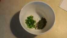 Rebane finamente la cebolla y cebollino. Usé cebollino seco esta vez. Colocarlos en un tazón mediano.