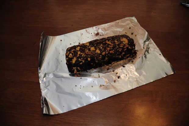 Poner en papel de aluminio, forma como un salami, envolver y refrigerar unas horas o toda la noche para que los sabores que se funden. Cortar rodajas de 1/2" de espesor y disfrutar.