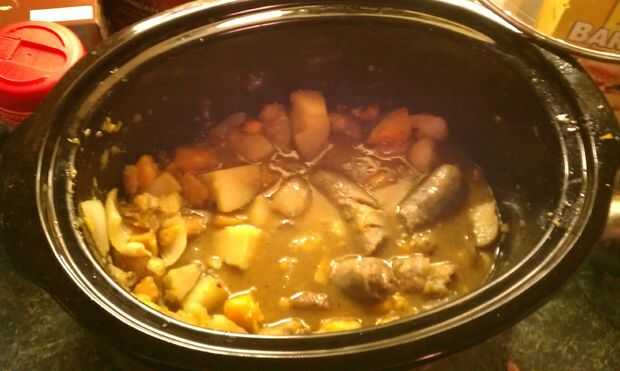 Para hacerla en la olla añadir todo a la olla a la vez, no necesita dorar la salchicha. No añadir el azúcar moreno, sin embargo, hasta el derecho antes de estar listo para servir.
