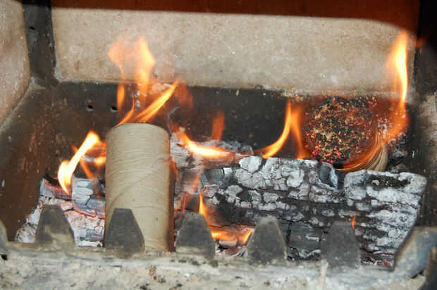 Combustible de la estufa de leña hecho de residuos de aserrín y papel higiénico tubos! Haciendo un molde simple, esto es una manera de exprimir extra uso de materiales de desecho y calentar su casa!