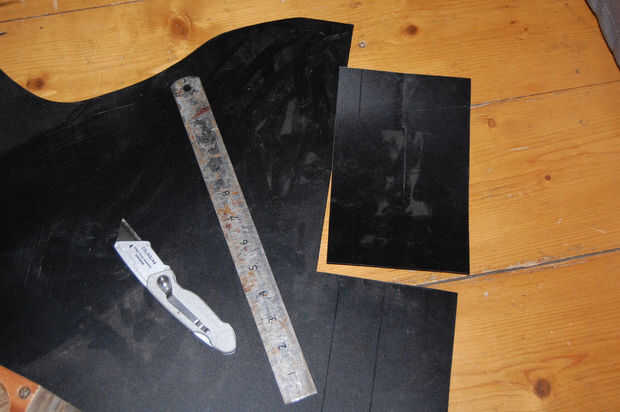 Usando un cuchillo y una regla cortar un pequeño rectángulo de algunas láminas de plástico fino y había encrespado por el interior.