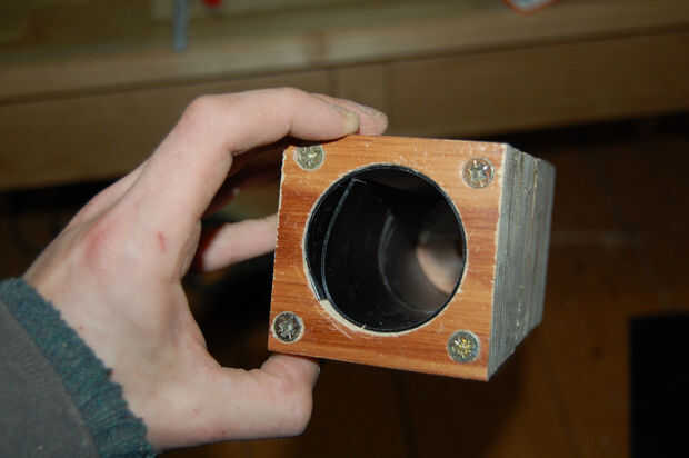 Ahora toma uno de los discos desde cuando que ha perforado el túnel y empuje hasta el fondo del molde. Forrado la cara de mi disco con un poco de plástico, pero usted probablemente estará bien dejándola desnuda.