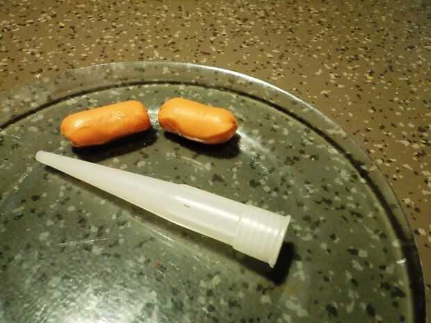 https://www.youtube.com/watch?v=K-cZpJQb1No&feature=youtu.bePaso 1: Hacer un cortador de embutidos necesita! Paso 2: tomé una jeringa grande y cortar la parte inferior. Paso 3: Paso 4: Nuestro cortador de jeringa - máquina de cortar está listo!!!!!!