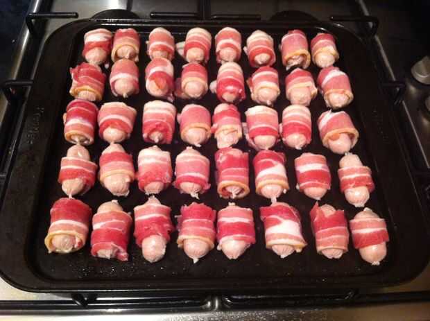 Cerdos en mantas, cerdos en mantas! Embutidos caseros de carnosas envuelven en tocino; Si no desea, sólo están mintiendo a sí mismo.Primero hice esto para una Navidad plato de lado y no voy a mentir, encular. No mezclar el polvo de Chile correctament