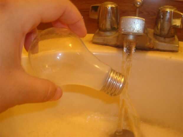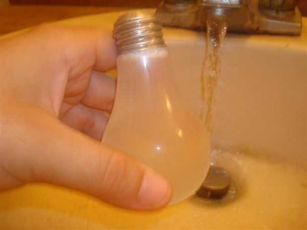 Hay muchas formas de lavar el interior de la bombilla. Muchas personas dicen sal, arroz, un poco de arena, pero me parece que el agua funciona mejor y es menos desperdicio. Así que llenar su bombilla con agua (Foto 2 y 3), swish alrededor un poco y luego volcar el agua. Esto puede tener que hacer un par de veces para sacar el caolín. Un bulbo claro es lo que vamos aquí (foto 4). Cualquier izquierda sobre blanco puede limpiarse con una servilleta y un trozo pequeño de alambre.