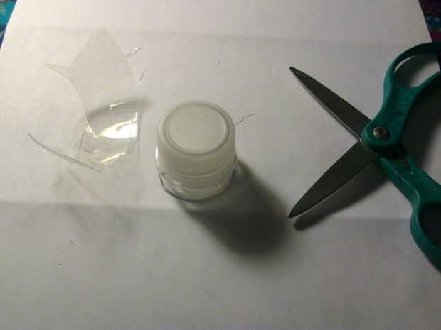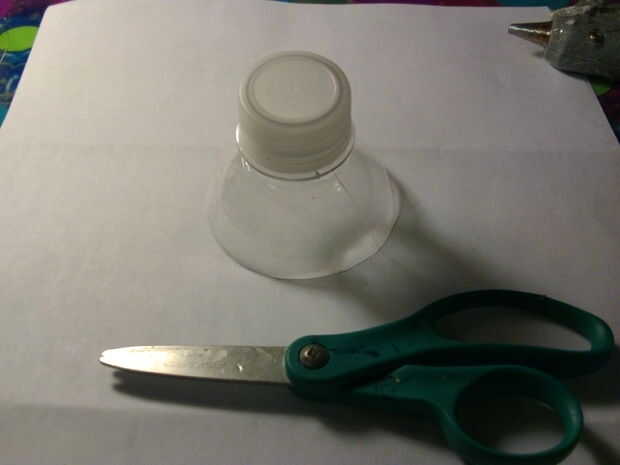 Cortar la parte superior de la botella y recortar por los bordes, por lo que se ve bien y es fácil pegar el cartón a la parte de la botella.