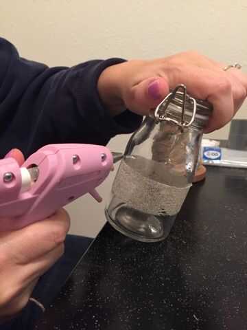 • Usando una pistola de pegamento, haga un pequeño punto de pegamento en la parte posterior de la jarra.