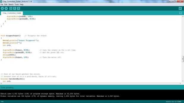 Aquí es una copia del código que usé para este proyecto. La mayor parte de este código es una adaptación de "El secreto Knock detección de cerradura de puerta" por Steve Hoefer.