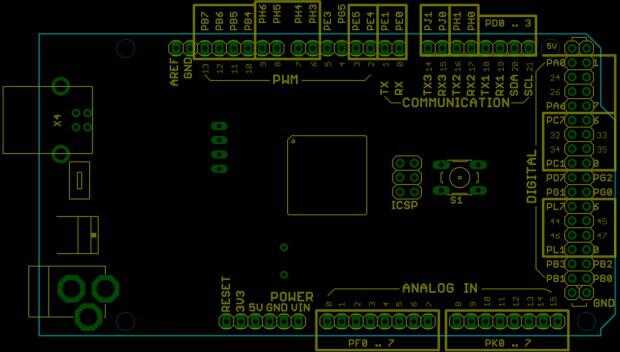 cuadro indica que el Mega tiene varios puertos con 8 pernos: los puertos a, b, c, y l son las opciones obvias. Si no importa perder pines analógicos también puede usar puertos f o k.