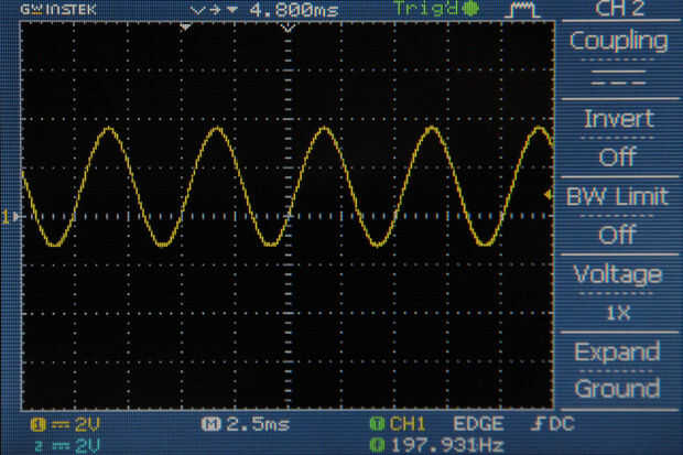La salida de este DAC para este boceto se muestra en la figura 7. Se puede ver que produce una onda senoidal de 200hz, como se esperaba.