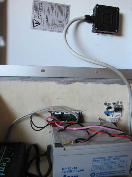 Entre el controlador de carga y el inversor puede colocar un interruptor que está junto a la toma de corriente.