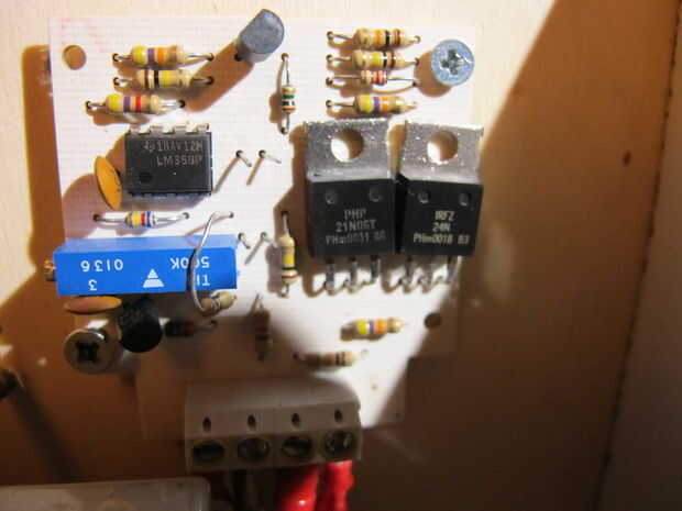 En el panel trasero tuve que hacer un recorte para la toma de corriente y tres agujeros, uno para el 230 lámpara de indicación de voltios y 2 LEDs del controlador de carga.