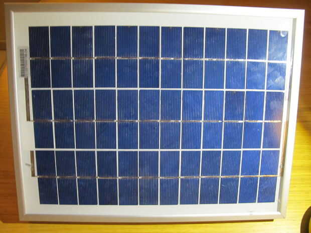 Primero necesitaba un panel solar. Ordené un panel de 10 Watts 12 voltios con las dimensiones 380 x 290 x 25 mm en el internet.