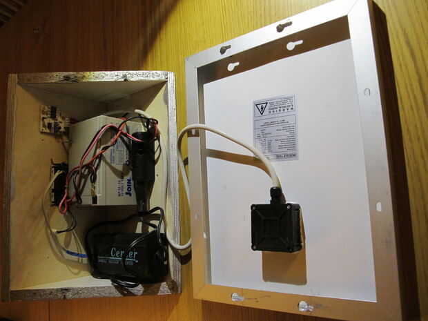 La parte más difícil fue construir la vivienda. Ya que quería una inclinación del panel solar de 45 grados que necesitaba dos piezas triangulares de madera para los paneles laterales. Las dimensiones donde por el tamaño del módulo solar fue 290 milímetros.