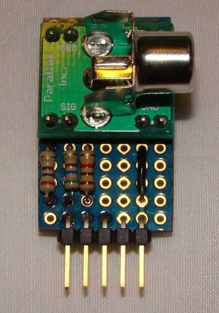 - Al otro lado de las resistencias todas conectarse "SIG" en el adaptador de tablero de RCA de paralaje