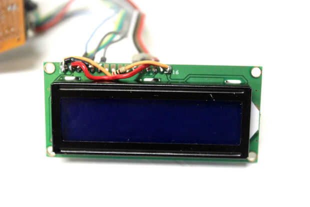 Antes de soldar pernos de cabecera, vamos a hacer algunas conexiones inter-LCD. Para salvarnos de la adición de cabeceras extra (y cables), he hecho algunas conexiones rápidas directamente en pcb de la pantalla LCD. Hacer las siguientes conexiones con algún cable 22awg trenzado: contraluz a tierra mediante resistencia de 330 ohm, contraluz VCC a + 5V, R/W de LCD a tierra.