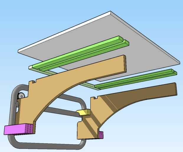 Los orificios perforados y me pusieron dos tornillos largos a través de carriles y lados para asegurar que la parte superior se mantiene en los lados y no levante si se cuelga una pesada pieza de madera la parte de atrás de la tabla.