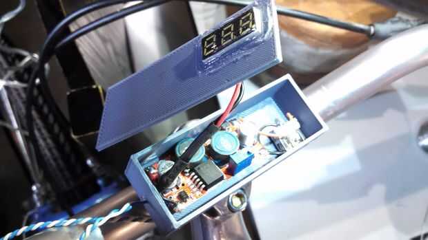 también otra vivienda fue diseñada para las barras de la manija. Esta casa el regulador de voltaje, el voltímetro y el usb. fácilmente puede utilizar cualquier envase de plástico pequeño como vivienda.
