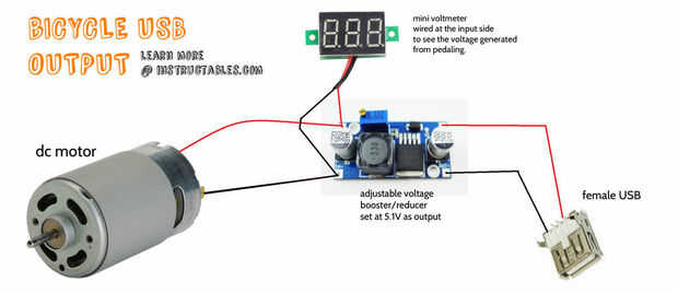 Ahora sabemos que la polaridad del motor dc con la dirección correcta, que son capaces de obtener una lectura de voltaje generado y nuestro regulador viene ajustado de 5.1V. una vez que todo está descubierto, seguir adelante y soldar todos los cables para una conexión permanente.