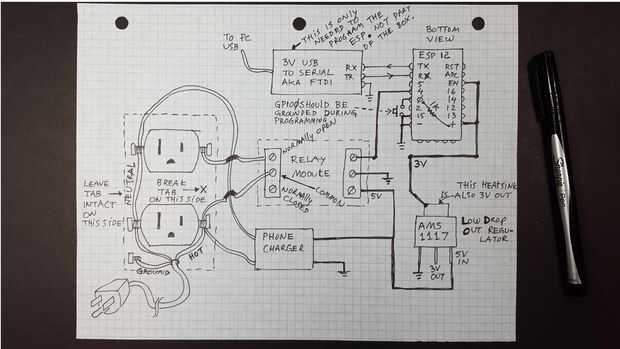 El cableado es bastante simple, así que opté por la soldadura de todo a la vuelta de la ESP8266 en lugar de crear un PCB personalizado.