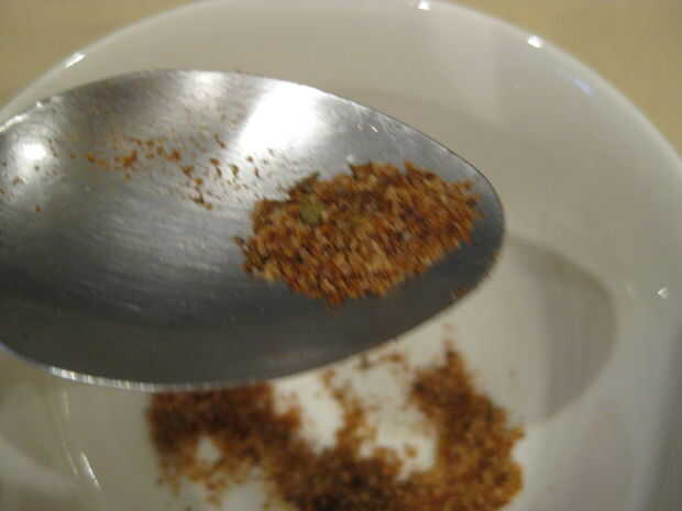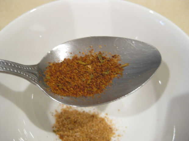 OK mira el nivel de ingredientes en la imagen. Sus cerca de 3-5 gramos, pero usted no tiene que ser preciso. El ingreients tiene que ser aproximadamente 1.1 Cajun para condimentar carne 1,0 o Cajun 1,2 a 1,0 filete especias. Especia de steak cuchara tan cerca una (no colmada) y una cuchara de Cajun con una pizca de tad.