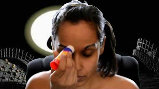Sally!Paso 1: primer paso mapa hacia fuera su idea y luego rellenar su cara con un color verde azulado, dejando los ojos en blanco.Paso 2: ojos el exterior de los ojos con una sombra de ojos azul de la cortina, poner azul oscuro sobre el ojo, delinea