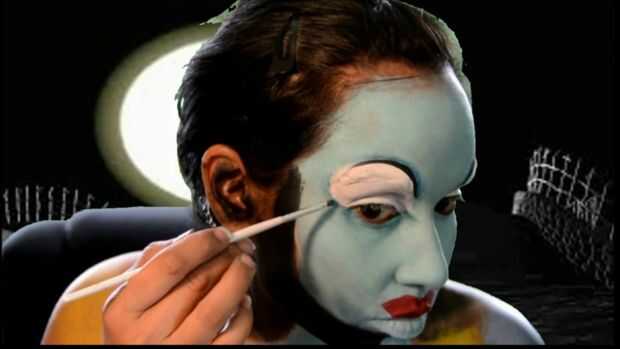 Sally de pesadilla antes de transformación de maquillaje de Navidad