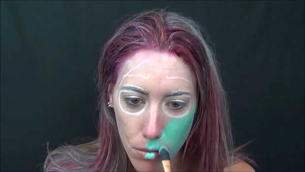 Sally de pesadilla antes de transformación de maquillaje de Navidad (1 / 8 paso)