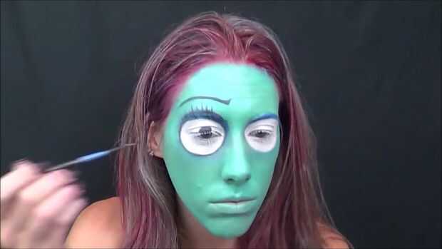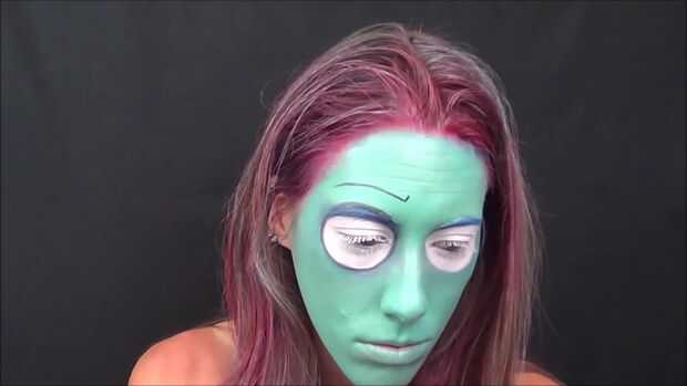 Sally de pesadilla antes de transformación de maquillaje de Navidad (3 / 8 paso)