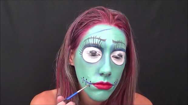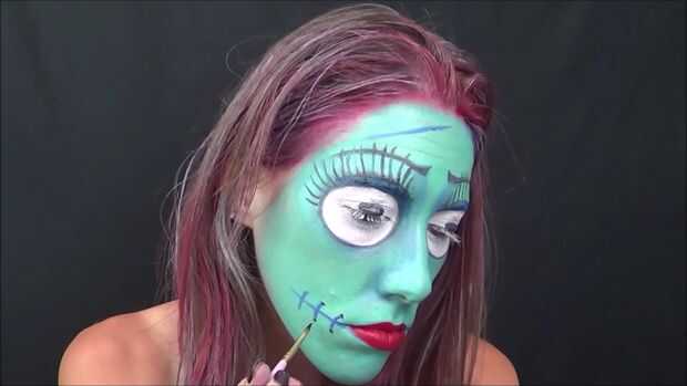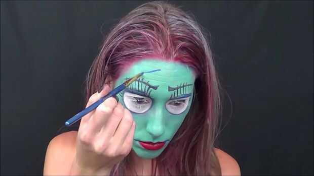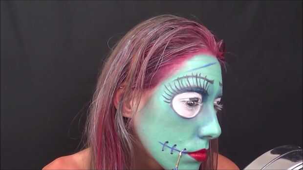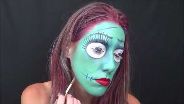 Sally de pesadilla antes de transformación de maquillaje de Navidad (5 / 8 paso)