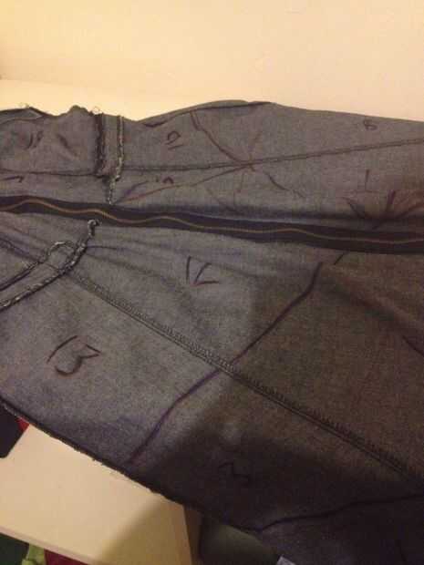 También trabajé con el corte del vestido. Como se puede ver que tiene unos paneles, quería el vestido para mantener su "corte" tan decidido a romper los bloques de color en diferentes "parches" que se encajan los paneles.