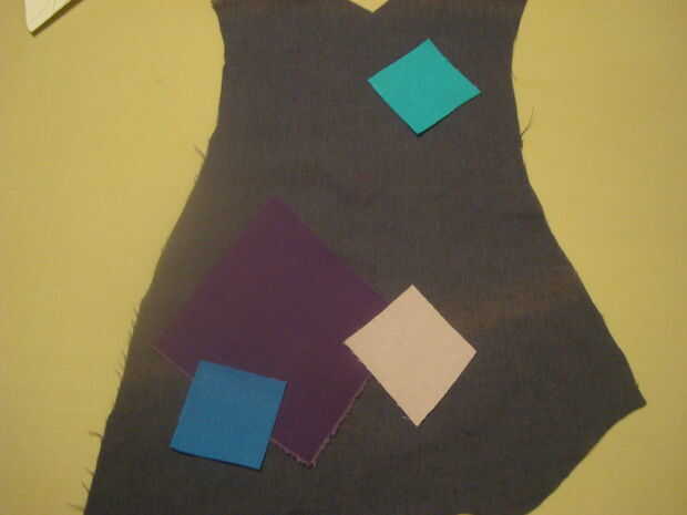 Cortar a tela formas para coser en la parte delantera del vestido.
