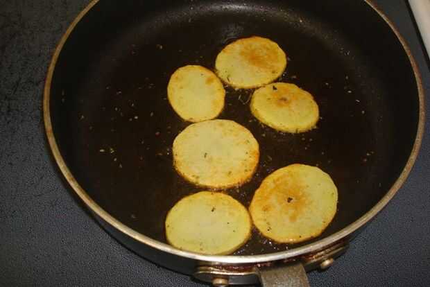 Punta freír de cacerola - freír el lado no experimentado en primer lugar, luego de leer los consejos de la parte superior. Que manera cuando se fríe la parte superior, sólo marrones los bordes, se ve mejor así).