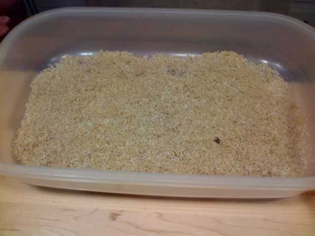 Mezcle todo y tome algunos mezcla de salmuera y capa de la parte inferior de un tupperware o plato de cocina.