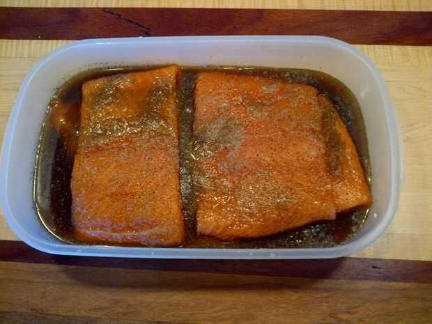 Como se puede ver después de 4 horas la mezcla de salmuera está haciendo su trabajo muy bien... la humedad es conseguir sacar de los salmones...